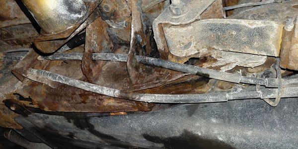 Once the vehicle is securely positioned on the hoist, utilizing jackstands for technician safety, we proceed to remove all components situated near the damaged area. This includes, but is not limited to, brake lines, fuel lines, the fuel tank, along with any crossmembers or skid plates.